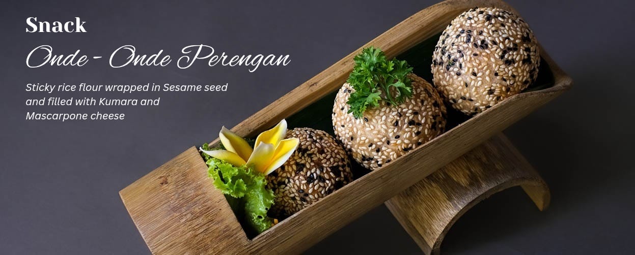 Sticky rice flour wrapped in Sesame seed and filled with Kumara /Purple sweet potato and Mascarpone cheese